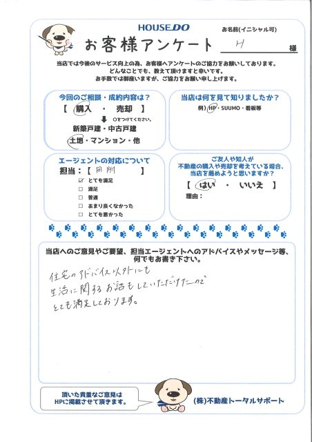 住宅のアドバイス以外にも生活に関するお話もしていただけたのでとても満足しております。