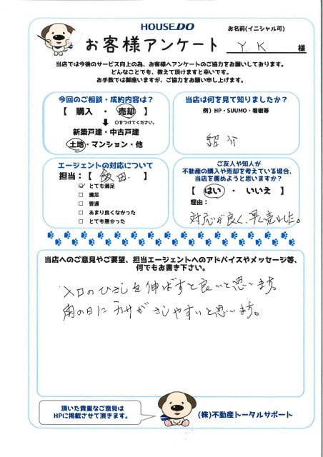■当店へのご意見やご要望、担当エージェントへのアドバイスやメッセージ等、何でもお書き下さい。