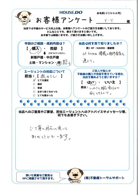 ■当店へのご意見やご要望、担当エージェントへのアドバイスやメッセージ等、何でもお書き下さい。