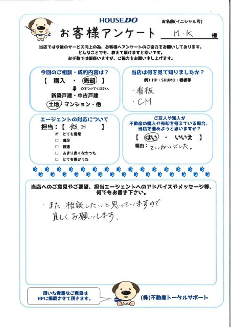 ■当店へのご意見やご要望、担当エージェントへのアドバイスやメッセージ等、何でもお書き下さい。